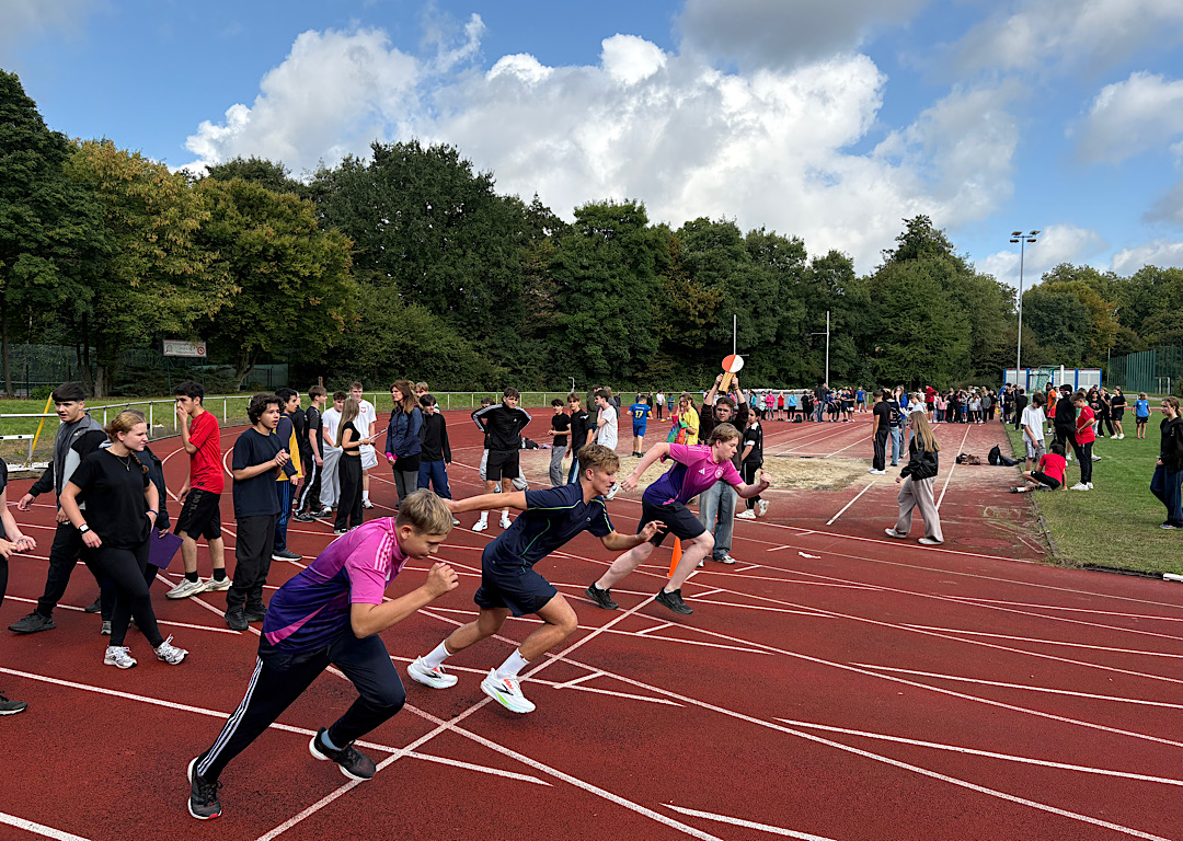Ein besonderer Dank gilt den Schülerinnen und Schülern der Jahrgangsstufe Q1, die an den Stationen für einen reibungslosen Ablauf sorgten und mit großem Einsatz halfen, alle Leistungen nach den offiziellen Vorgaben abzunehmen und Frau Kanzler und Herrn Lübberdink für die tolle Organisation. Ebenso unverzichtbar: unser Schulsanitätsdienst, der stets zur Stelle war, und die Sporthelferinnen und Sporthelfer, die überall dort unterstützten, wo Hilfe gebraucht wurde und u.a. das Warm-Up durchführten.
