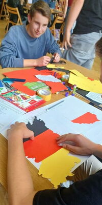 Am Mittwoch (25.06.25) hieß es: Geschichte trifft Kreativität. Zunächst erkundeten die Jugendlichen die Burg von Olsztyn, nahmen an einem Ritterworkshop teil und erfuhren mehr über Nikolaus Kopernikus, der eng mit der Stadt Olsztyn verbunden und daher auch auf dem Graffiti an unserer Turnhalle verewigt ist. Am Nachmittag ging es zurück zur Partnerschule, wo in international gemischten Gruppen kreative Plakate zu Themen wie Feste, Kulinarik, Sport und Geschichte gestaltet wurden. Ein spannendes Volleyballspiel in der Turnhalle sowie ein Cheerleading-Workshop sorgten anschließend für sportliche Abwechslung.