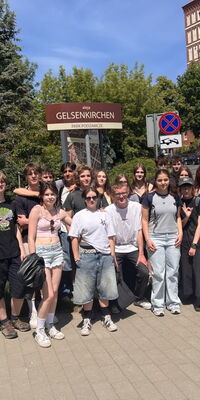 Am Montag (07.04.25) besuchte die Gruppe zunächst das Max-Planck-Gymnasium und wurde dort von der Schulleitung herzlich empfangen. Nachdem unsere Gäste das imposante Graffiti zur Städtepartnerschaft besichtigt hatten, wurden sie in Kleingruppen durch die Schule geführt. Von dort brach die Gruppe dann zu einem offiziellen Empfang des Bezirksbürgermeisters Nord, Herrn Dominic Schneider, im Hans-Sachs-Haus auf. Nach einer Begrüßung und Gesprächsrunde, an der auch Mitglieder des Vereins zur Förderung der Städtepartnerschaft zwischen Gelsenkirchen und Olsztyn teilnahmen, wurde vor Ort zu Mittag gegessen und im Anschluss das Allensteiner Heimatmuseum „Der Treudank“ besucht. Angesichts der dortigen Bilder und Exponate kamen die Jugendlichen zu einem regen Austausch über die historischen Verflechtungen der beiden Regionen (Ermland-Masuren und Ruhrgebiet) sowie über die historischen Hintergründe der Städtepartnerschaft. Im Rahmen einer sich anschließenden Stadtrundfahrt lernten unsere polnischen Gäste Gelsenkirchen und insbesondere die hiesige Industriekultur näher kennen, etwa beim Besuch des ehemaligen Zechengeländes „Nordsternpark“. Den Tag rundete ein gemeinsamer Grillabend in der Herberge statt, bei dem die traditionelle Currysoße zur Bratwurst natürlich nicht fehlen durfte. Auch hier brachten die Jugendlichen aus beiden Ländern ihre kulinarischen Fähigkeiten mit ein und bereiteten selbst Spieße, Salate und Dips nach Familienrezepten zu.