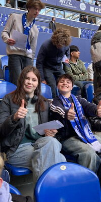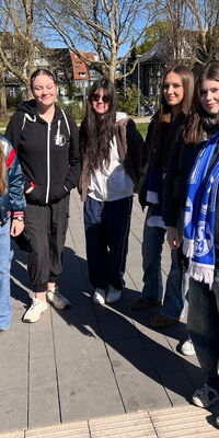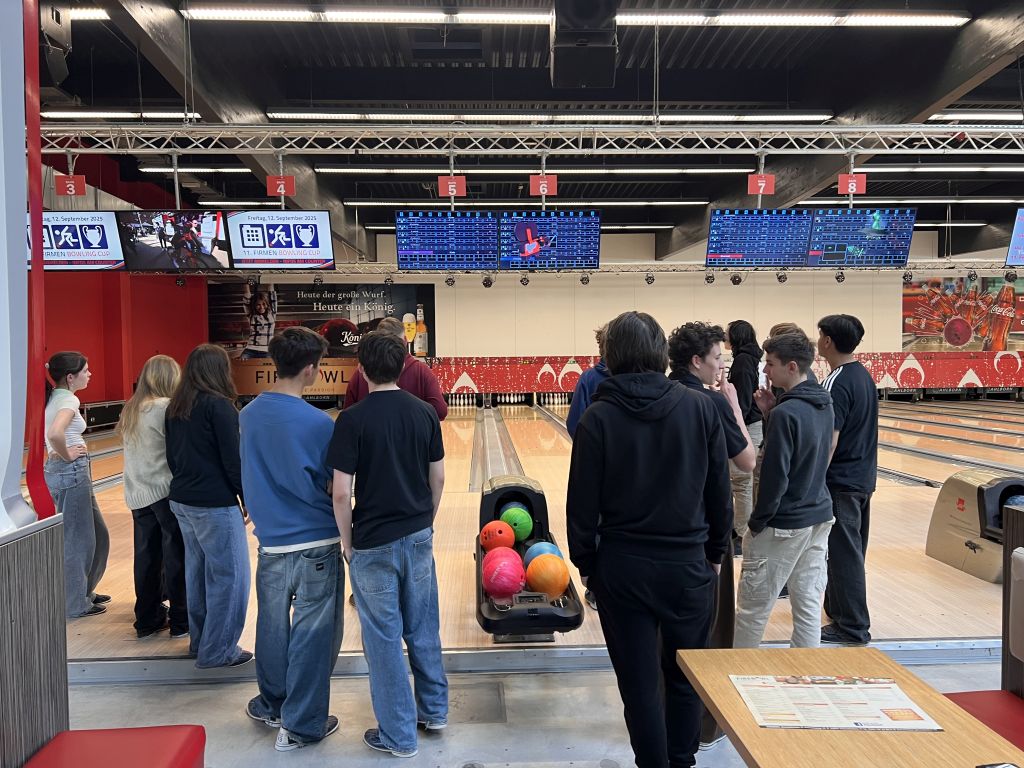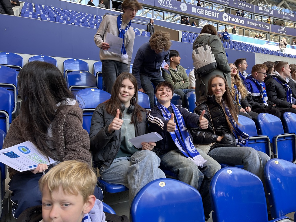Am Dienstag (08.04.25) folgte nach dem Aufenthalt an der Schule noch ein gemütlicher Spaziergang durch die Innenstadt von Buer, bevor der Tag mit einem Bowlingabend im „Firebowl“ einen geselligen Ausklang nahm. Auch der Mittwoch (09.04.2025) hielt nach dem erfolgreichen Abschluss des Graffiti-Projekts und einem gemeinsamen Pizzaessen auf dem Schulhof bei strahlendem Sonnenschein weitere schöne Programmpunkte bereit: Die Gruppe genoss zunächst ein leckeres Eis in Buer, bevor sie sich auf den Weg zur bereits bekannten VELTINS-Arena machte. Dort erhielten die Jugendlichen im Rahmen spannender Führungen exklusive Einblicke – ein weiteres Highlight der Begegnung!