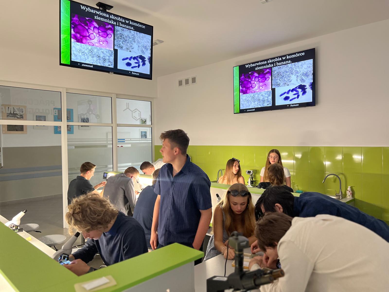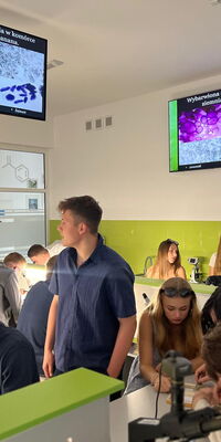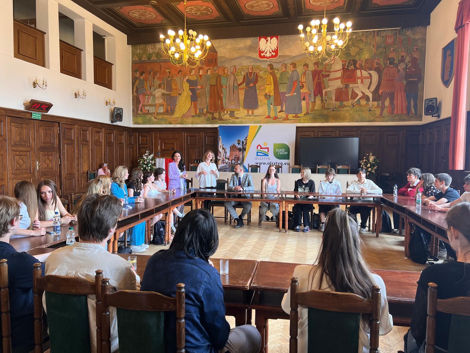 Am Montag (23.06.25) stand zunächst der Besuch an unserer Partnerschule an, dem V. Lyzeum in Olsztyn (V LO). In der festlich geschmückten Aula wurden wir herzlich empfangen und offiziell begrüßt. Anschließend erhielten unsere Jugendlichen einen Einblick in das Schulleben am V LO. Beeindruckend waren die vielfältigen Räumlichkeiten der Schule wie zum Beispiel die neue Sporthalle, in der später noch gemeinsam gespielt wurde, das moderne schuleigene Filmstudio, der Fitnessraum, die naturwissenschaftlichen Labore und nicht zuletzt der Biologieraum mit seiner vielfältigen Tierwelt. Mittags folgte ein offizieller Empfang durch den Stadtpräsidenten im Rathaus von Olsztyn.