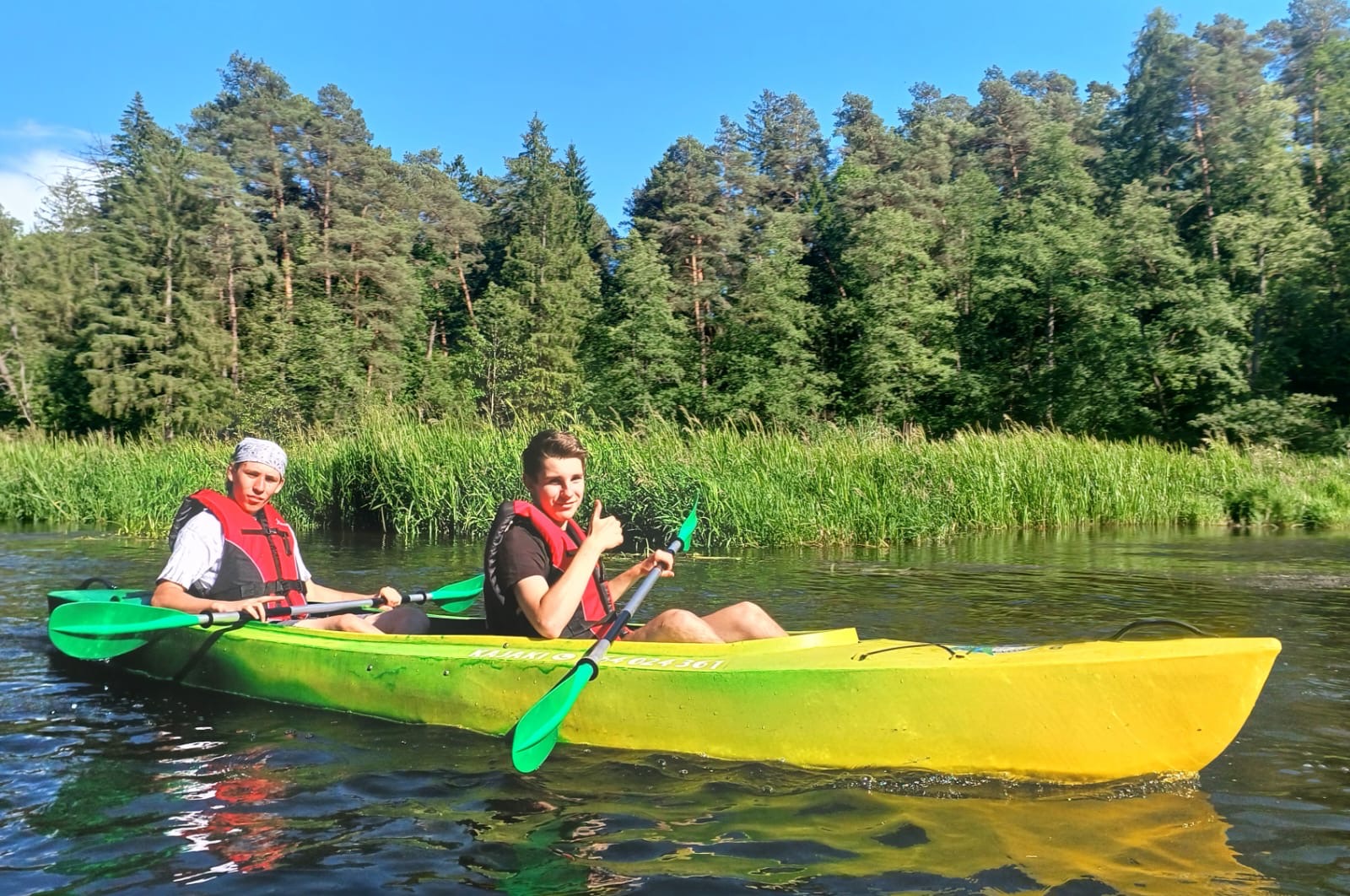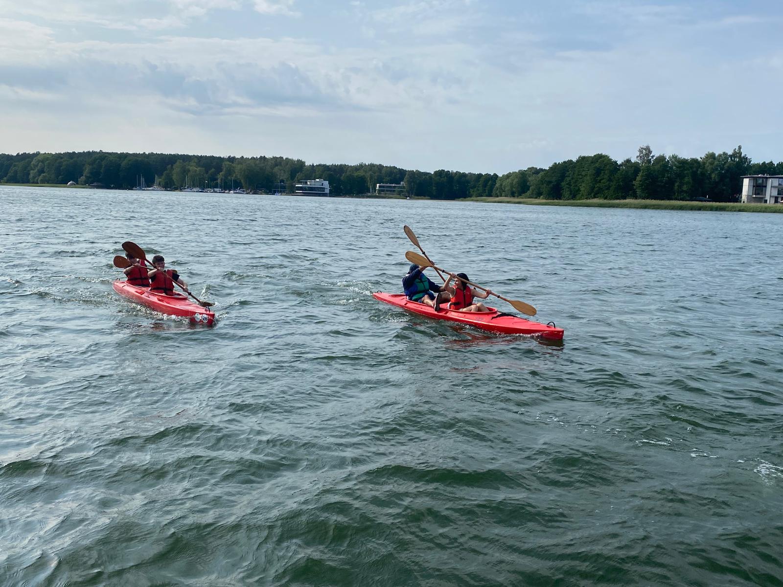 Der Donnerstag (26.06.25) stand ganz im Zeichen von Überraschungen. Gleich zu Beginn wartete vor der Schule eine besondere Begegnung auf uns: Eine echte Eule – das Wappentier unserer Schule – konnte aus nächster Nähe bestaunt werden, begleitet von einem informativen Vortrag zu diesem beeindruckenden Tier. Danach setzten die Jugendlichen ihre Workshoparbeit fort und präsentierten die Ergebnisse anschließend in der Aula. Am Nachmittag wurden wir mit einem Stand-Up-Paddle-Kurs am See Ukiel überrascht, der das Wassersportprogramm dieser Woche perfekt abrundete. Den krönenden Schlusspunkt bildete ein feierliches Abendessen, bei dem die Gruppe auf die erlebnisreiche Woche in Olsztyn zurückblickte.