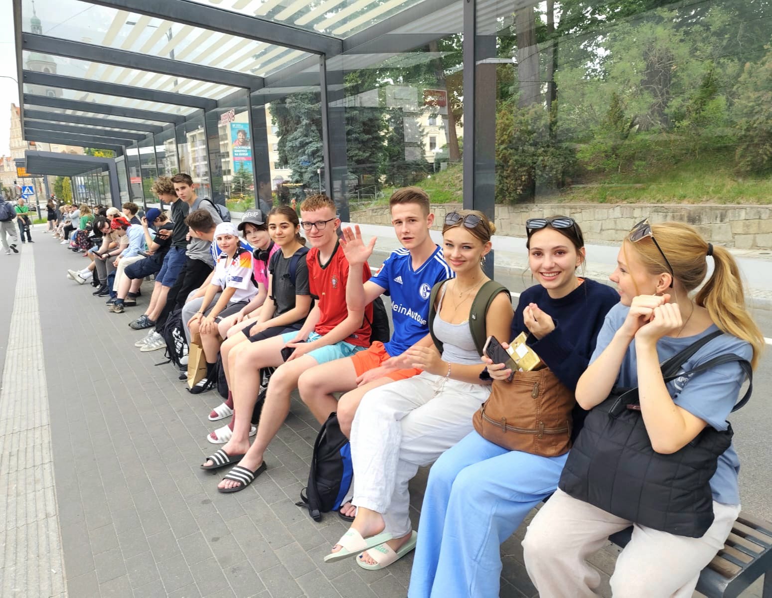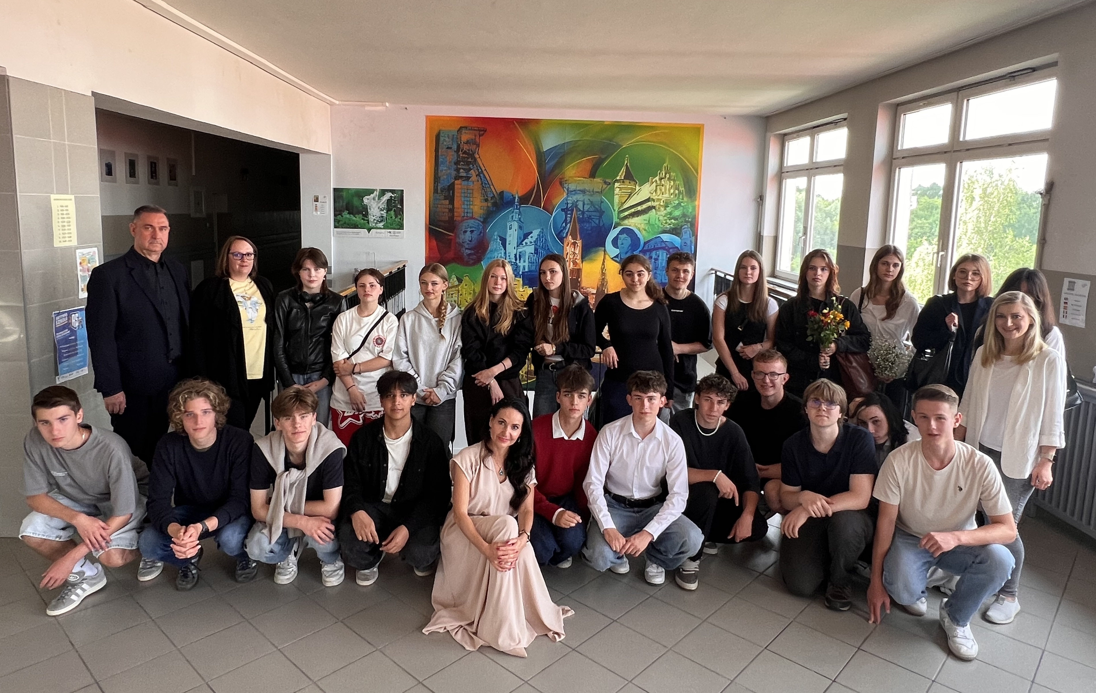 Am Freitag (27.06.25) hieß es schließlich Abschied nehmen. Da es zugleich auch der letzte Schultag in Polen war, durften wir vormittags an der Abschlusszeremonie in der Aula teilnehmen – ein eindrucksvoller Einblick in die Schulkultur unseres Partnergymnasiums. Schließlich versammelten sich alle noch einmal vor dem großen Wandbild, dem Pendant zu unserem Graffiti in Gelsenkirchen, für ein gemeinsames Erinnerungsfoto. Nach einem herzlichen Abschied traten unsere Jugendlichen die Rückreise an und erreichten kurz nach Mitternacht Gelsenkirchen – müde, aber voller bleibender Erinnerungen und bereichert durch neue Freundschaften, gestärkte interkulturelle Kompetenz und das Gefühl, als junge Europäerinnen und Europäer über Grenzen hinaus verbunden zu sein. Bezuschusst wurde unsere Jugendbegegnung durch das Deutsch-Polnische Jugendwerk (DPJW).