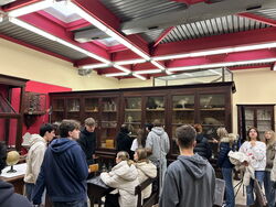 Während der folgenden fünf Tage nahmen unsere Schüler:innen an einzelnen Unterrichtsstunden ihrer italienischen Partner:innen teil, was sprachlich sehr herausfordernd, aber gewinnbringend für die Schulung des Hörverstehens war und erfahren ließ, dass am 'Monti' eher durchweg frontal unterrichtet wird. Bei dem von zwei italienischen Partnern organisierten Schulrundgang begrüßte dann auch der Schulleiter Herr Giusta die deutschen Gäste, denen er stolz das wissenschaftliche Archiv der Schule aufschloss, das durch eine Vielzahl ausgestopfter und 'eingelegter' Tiere sowie durch antike Gerätschaften und Schulbänke sehr beeindruckte.