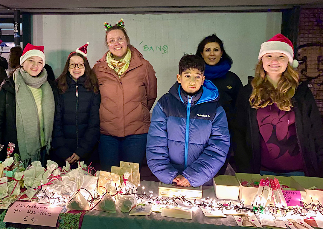 Am gestrigen Abend verwandelte sich unsere Aula in ein vorweihnachtliches Zentrum der Musik und des Miteinanders. Im Rahmen des Weihnachtskonzerts wurden von Schülerinnen und Schülern gestaltete Weihnachtskarten und Glückskerzen sowie Glühwein und Plätzchen verkauft. Der Erlös von 1100 Euro kommt dem Friedensdorf Oberhausen zugute, das sich für die medizinische Versorgung von Kindern aus Kriegsgebieten einsetzt. Die Initiatoren der Spendenaktion hatten sich zum Ziel gesetzt, mit der Veranstaltung nicht nur Geld zu sammeln, sondern auch das Bewusstsein für Menschen in Not zu schärfen. So gab es neben den Verkaufsständen auch einen Tisch, an dem sich die Besucher über die Organisation informieren konnten.