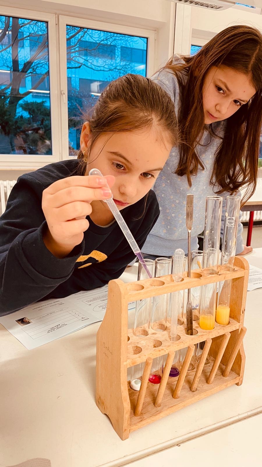 Unter dem Thema „Krankheit auf hoher See – Hilf Mathilda, ihre Freunde zu retten!“ führten die Schülerinnen verschiedene Experimente durch. Sie erforschten z.B. den Vitamin C-Gehalt verschiedener Obst- und Gemüsesorten oder den Einfluss des Kochens und Verarbeitens auf den Vitamin C-Gehalt von Nahrungsmitteln. Die gewonnenen Erkenntnisse nutzten die Schülerinnen, um der Matrosen-Schülerin Mathilda wertvolle Tipps zu geben. Diese muss in der Geschichte ihre Freunde von der Krankheit Skorbut heilen.